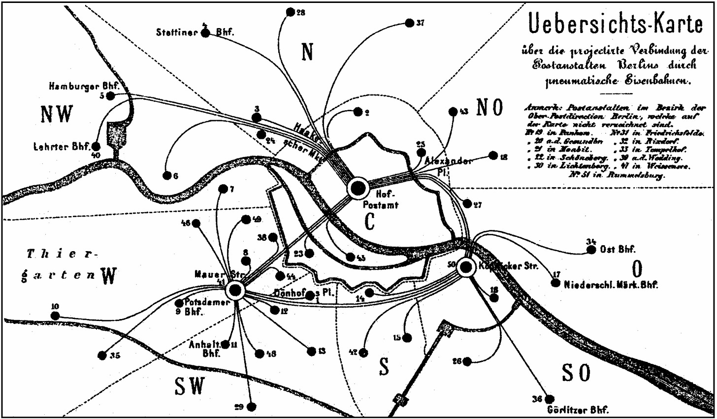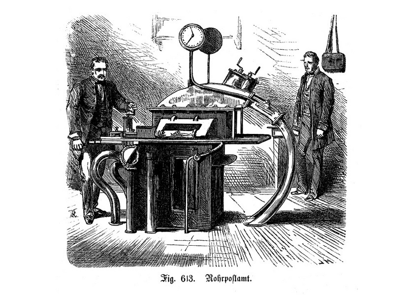 In 1892, when freshly printed copies of Theodor Fontane’s novel “Frau Jenny Treibel” reached their first readers, Berlin’s Rohrpost - pneumatic tube postal service - so eagerly tested by Professor Wilibald Schmidt, was a fast-expanding, almost organic system. Its subterranean tentacles moved steadily forward under the streets and the pavements, providing what was to become one of the most efficient pneumatic tube postal services worldwide.