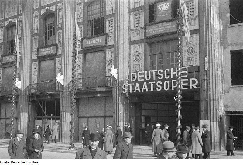 A day later, on November 6, 1949 the text and the notes were published in the big national newspaper the “Neue Deutschland” (still on the market today), and the anthem had its official premiere at the Deutsches Staatsoper, at the time still residing in the Admiralspalast in Friedrichstraße.
