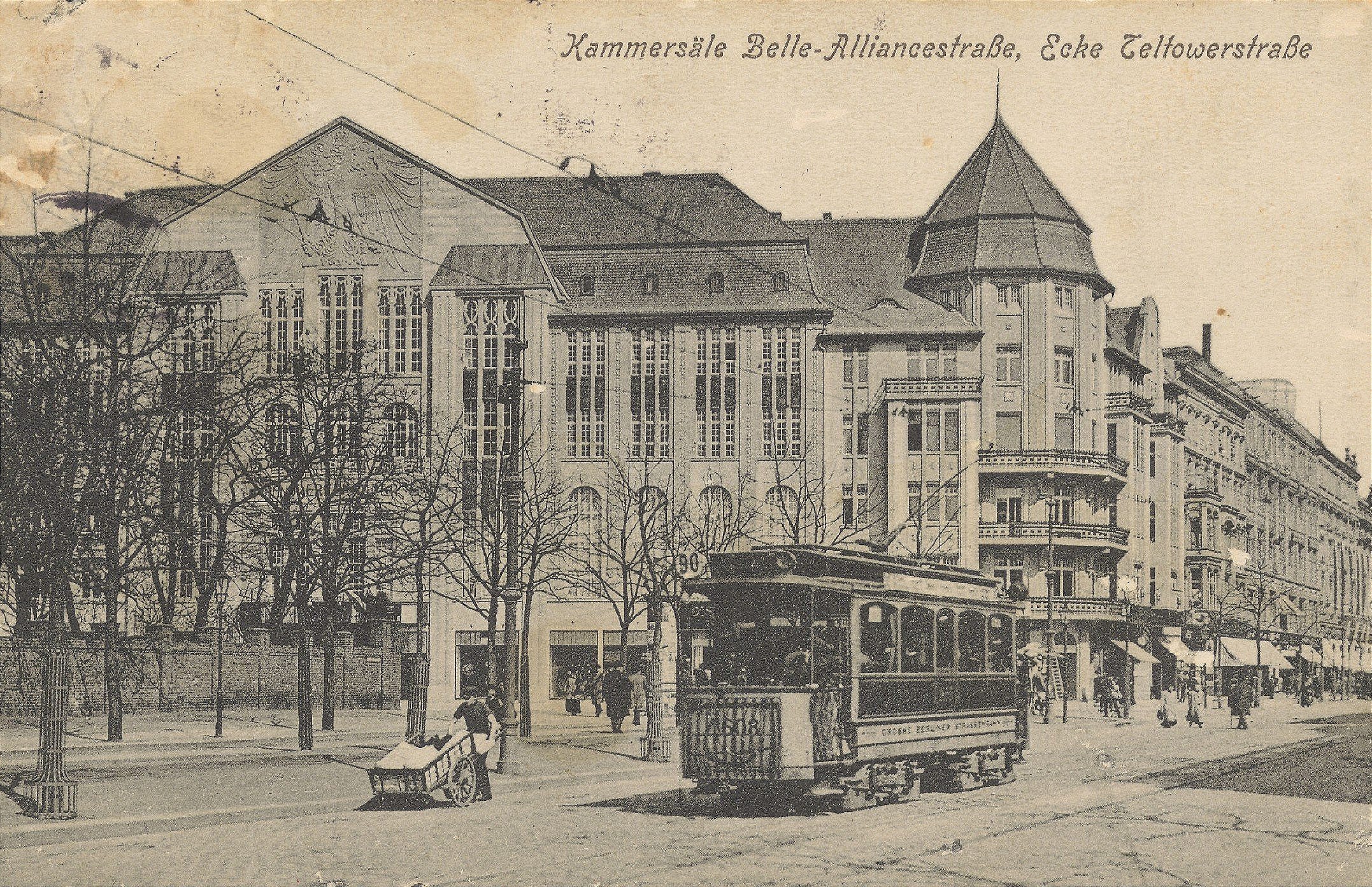 You are looking at the corner of Belle-Alliance-Straße and Teltower Straße. Neither of the two is mentioned on current Berlin maps, though: they are called Mehringdamm and Obentrautstraße respectively. The street corner, just south of Hallesches Tor in Berlin-Kreuzberg, has changed a lot.