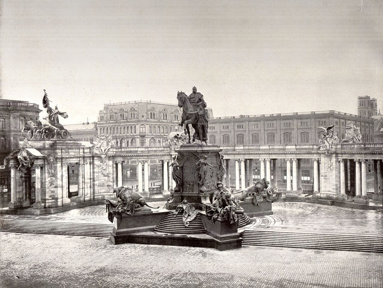 Instead, Prussian ruler gave the city one of the most preposterously overloaded public-space artworks it would ever see: a memorial to his grandfather, Kaiser Wilhelm I, Kaiser-Wilhelm-Nationaldenkmal. Or, das Kleine Zoo vom Wilhelm Zwo (Little Zoo of William Two) as Berliners were quick to dub it due to the staggering number of animals featured therein. 157, to be exact, including among others: 21 horses, 32 lizards and one frog…