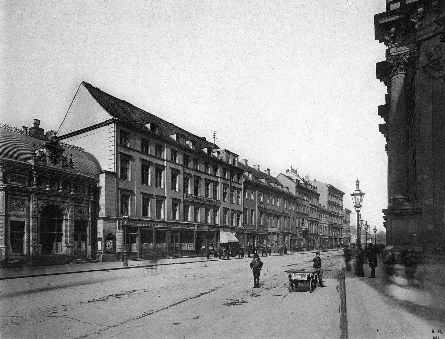 That is why the houses lining the street housed many a different trade, from wallpaper manufactures to (a bit later, of course) photo studios. But the most important ones were - and that from the go - public houses and cafes. In the 1860, the soon to become legendary Berlin coffee house, Café Josty (a popular pastry shop opened by two brothers Josty) moved here from around the corner. In the 1890s they would move again this time to their best-known location at Potsdamer Platz.